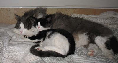 Upptäckte att Cutie skitit på sig, hela bakbenen, svansen o ryggen full av illaluktande kattbajs! FAAAAN! Gjorde i ordning buren, sen in på handikappstoan o Cutie-stackaren fick bada i handfatet... Cutie formligen HATAR att bada, men han finner sig i det, tack o lov. Men handfatsbadet var liksom inte alls till belåtenhet, tvärtom trodde jag ärligt talat att han skulle bryta ihop totalt, kattstackaren! Han formligen hankattsbrölade hela badet igenom, sen fick vi försöka torka honom torr.. Inte skoj.. Men det gick.. Sen var det bara att kamma, kamma o kamma... Pudra, pudra o pudra.. Kamma igen, o sen var han acceptabel, men extremt mjuk i pälsen.. Suck.. Cutie var dock ensam i sin klass, så jag närde ändå ett litet hopp om cert..
